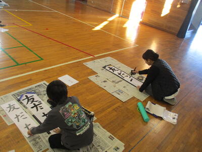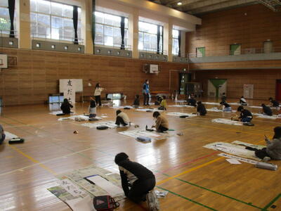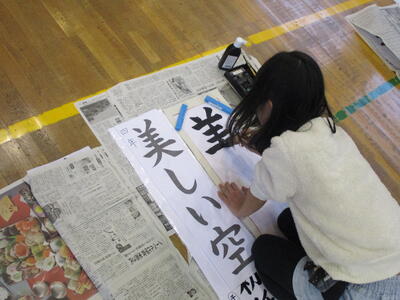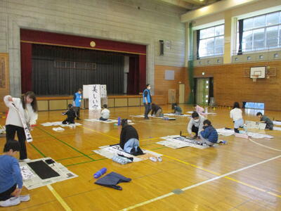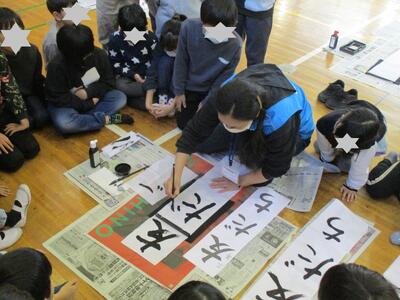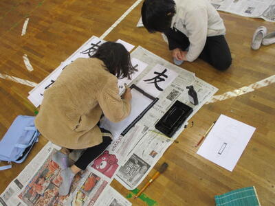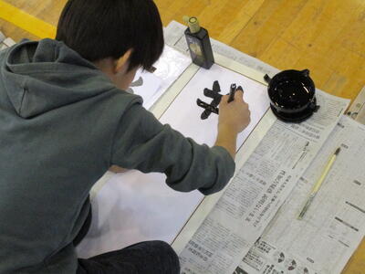 今日は、5・6年生が地域の方を講師にお招きして、書初めの練習を行いました。さすが高学年、準備も手際が良く、短時間で行っています。