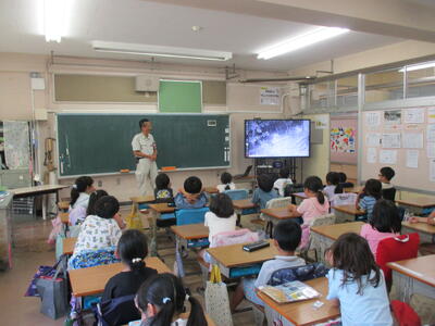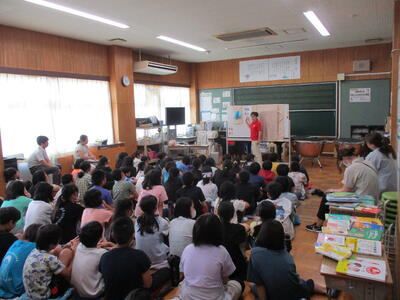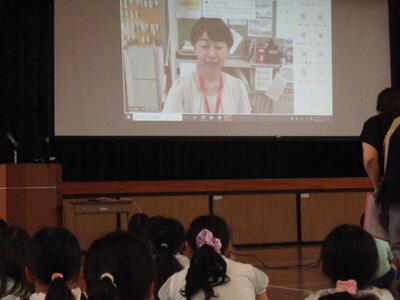 4時間目、2年生は自然博物館の学芸員の方にお越しいただき、生き物についての話をうかがいました。多くの映像をもとに、自然の生き物について詳しい説明をしていただきました。生き物の知識が増しました。