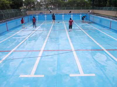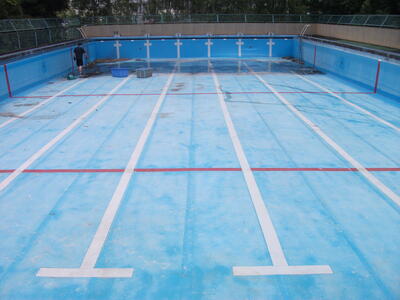 プールの中はきれいになりましたが、通路やプールサイドなどは経年の汚れのため、なかなか落ちません。来年度のプール清掃は、汚れも例年並みと予想され、もっと時間がかかりそうです。そのため、プール清掃へのご協力を保護者の方々に依頼するかもしれません。その節はどうぞご協力をよろしくお願いいたします。