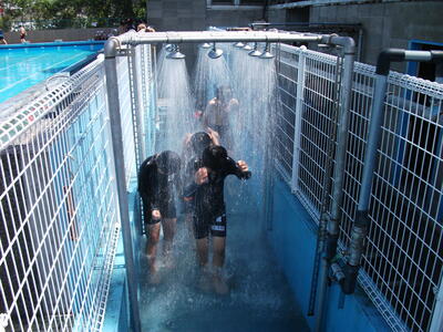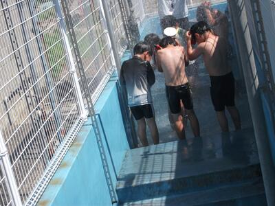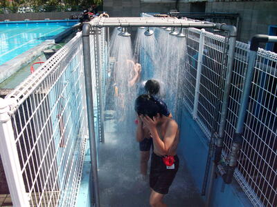 さすがに5.6年生のようにシャワーの冷たさを表情だけでの表現はできませんでした。「じごくのシャワーだ…」何人かがつぶやいていました。じごくのシャワーという言葉は、2年間水泳が行われなくてもしっかり受け継がれているのですね。