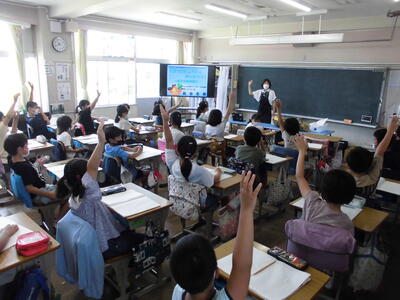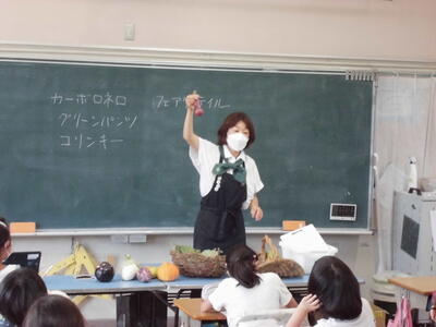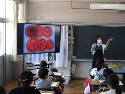 4年生は、YSI(やさい)プロジェクトの一環として、野菜ソムリエの方にお話を聞きました。ナスは、世界中に1000種類以上あることを教えていただいたり、見たこともない野菜の実物を見せていただいたりするなど驚きの連続でした。野菜の旬を知り、何でもおいしく食べていきたいものです。