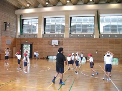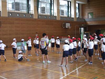 今日は元フットサル選手 後呂 康人(うしろ やすと)さんが夢先生として二俣小に来てくださいました。第一部は、体育館でアシスタントの西山 淳哉(にしやま じゅんや)さん(元日本IBMラグビー選手)と課題達成型のゲームです。全員の気持ちが一つにならないとクリアーできません。失敗を繰り返しながら、夢先生と成功するためにどうしたらよいか話し合いました。その結果…。2つのゲームとも見事課題をクリアーすることができました。
