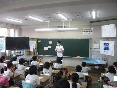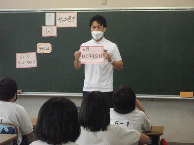 今日は5年生は、JFAこころのプロジェクトの一環としての「夢の教室」を行いました。これは、JFA(日本サッカー協会)が、様々な競技の現役選手/OB/OGなどを「夢先生」として学校へ派遣し、「夢を持つことや、その夢に向かって努力することの大切さ」「仲間と協力することの大切さ」などを「夢の教室」で伝えていくものです。
