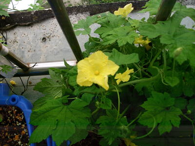 校庭の花壇にもゴーヤが植えてあり、少しずつ花をつけています。