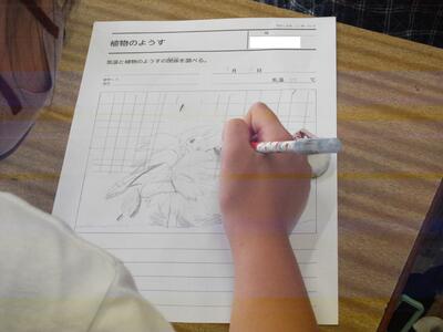 4年生は、ちょうど成長の様子を観察して、カードに記録していました。上手に描いています。このあとどのくらい成長していくでしょうか。