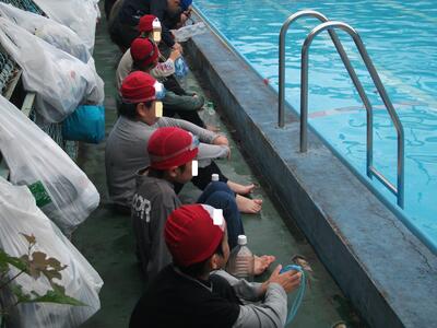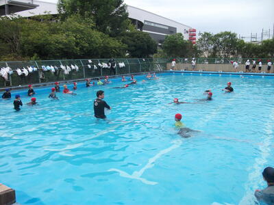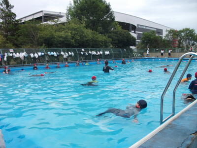 今日は、5・6年生の水泳指導も最終日。着衣泳を行いました。着衣のまま水に入ると、水着の時とどう違うのかを体験してもらいます。