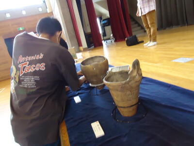 今日は、6年生が、千葉県教育委員会文化財課から講師の先生をお招きして、「土器と古代宅配便」をテーマに出前授業を行いました。