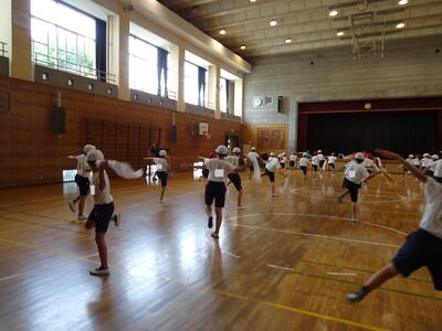 高谷中学校の教頭先生が、5・6年生に体育の授業を行ってくださいました。