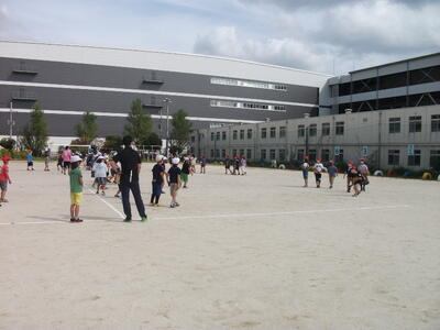 今回の学習内容は「ボール投げ」、春に行った体力テストのソフトボール投げの記録をさらに伸ばすために、投げる際のフォームの作り方などを指導していただきました。