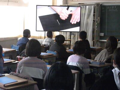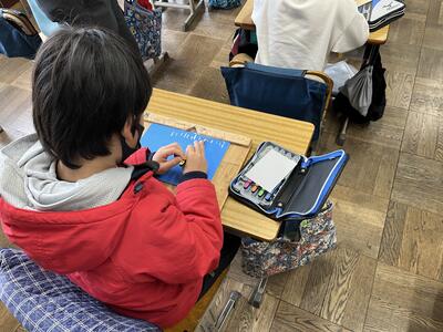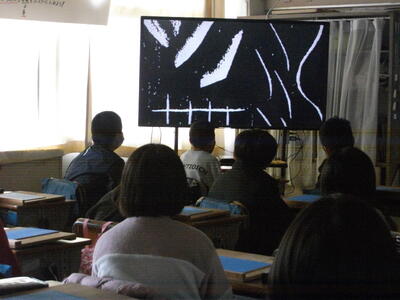 今日の4時間目に、4年生が、学校教材の業者の方に彫刻刀の使い方を教えてもらいました。まずはDVDを見て使い方を覚え、そのあとは実践です。DVDの中では、板は軽く削れていきますが、上手に削るには力加減が難しい…。弱すぎると薄くしか削れず、強すぎると削りすぎてしまいます。何度も繰り返して、ちょうどよい力加減を覚えてくださいね。板が滑らないようにする版画板のしくみに歓声をあげていた4年生でした。「刃の前に手を置かない!」ケガをしないために絶対に守って、いい作品を仕上げていきましょう。