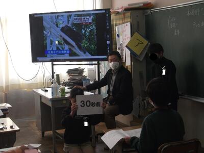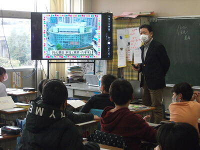 5,6時間目には、5年生が「テレビ朝日出前授業」を行いました。テレビ朝日の方に、ニュース番組ができるまでやニュースが放送されるまでなどを教えていただきました。最初に見たDVDには、普段ニュースに出てくるアナウンサーの顔も。とても身近に感じられました。後半は、5年生がディレクター、アナウンサー、タイムキーパーになって、時間通りに原稿を読むことを体験しました。全体を仕切るディレクター、時間を管理するタイムキーパー、時間を考えながら臨機応変に原稿を変えながら話すアナウンサーとそれぞれの苦労を体験しました。体験した子たちは、時間ぴったりに原稿を読むことができていました。「明日からテレビ朝日のアナウンサーにならないかい?」とスカウトされた子も…。あっという間の2時間でした。放送局の仕事がよくわかる楽しい時間をありがとうございました。
