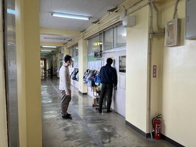 今日は、市川警察署生活安全課の方においでいただき、不審者対応訓練を行いました。校内に不審者が侵入したという設定で、職員は不審者への対応、児童は安全に避難することが目的です。警察の方に不審者役をお願いしましたが、迫真の演技でした。子どもたちは、入口の施錠、バリケードの作成やベランダを通って安全な教室への避難を静かに行っていました。訓練後に警察の方から話を聞きました。「いかのおすし」覚えていますか?