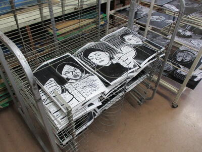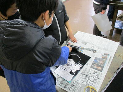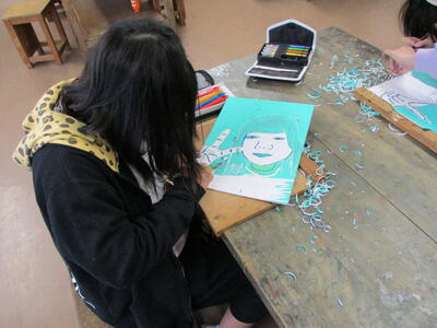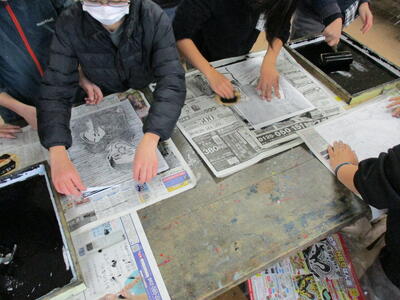 今日は5年生が版画の印刷を行いました。自分の顔を上手に彫り上げました。しっかりとそれぞれの特徴を表現できています。
