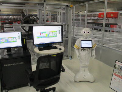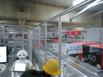 事前学習後、見学に出発です。5年生は9:30~。6年生は10時30分~と時間差での見学です。徒歩5分で到着します。これまでで最も近い校外学習ですね。Softbank Robotics Logistics Innovation Labは、最新の物流機械の紹介を行う場所なので、広~い倉庫内のほんの一部です。さすがSOFTBANK、ペッパー君のお出迎えを受けました。ここでは、人の労力を減らすためにロボットが活躍しています。ロボットは、「疲れた~」「腹減った~」などの文句は言いません。しかし、プログラミングや修理などは人でなければできません。たくさんの荷物を、最小限の人数で、効率よく分けていくための装置がたくさんあります。