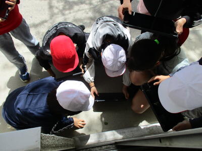 ◆4年…理科の学習。春を探してタブレットで写真を撮っています。このグループはカエルを発見しました。冬眠から起きてきたのでしょうか?「カナヘビもいないかなぁ」という声もあったので、校門で見かけたカナヘビの写真もあわせてアップしておきます。