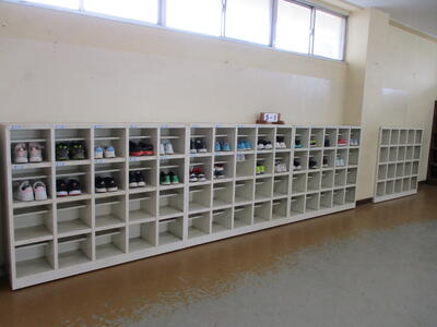 業間休みのあとの昇降口の様子です。どの学年の靴箱もきれいにそろっています。きっと落ち着いた生活をしているんだろうなぁという感じを受けます。毎日落ち着いて楽しい毎日を過ごせるようにしていきたいと思います。