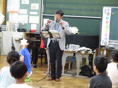 今日は3年生が、リコーダー教室を行いました。「トゥ」という言葉で気持ちを込めて声を出すと、「ありがとう」や「〇〇(担任)せんせい~」と聞こえてくるから不思議です。舌の使い方(タンギング)が大切です。穴をふさぐ指の使い方も教わりました。すばやく穴をふさぐと、それだけで音が聞こえてきます。素早い指の動きが大切です。
