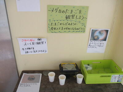 5年生の教室前で「メダカ」が飼育されています。今の時期は卵を産み、赤ちゃんがたくさん生まれてきます。小さな小さなメダカがだんだん大きくなってくると実にうれしいものです。静かに見守ってあげましょう。
