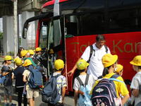 今日は5年生が待ちに待った自然教室です。7時40分の集合にも遅れる子はいませんでした。予定よりも少し早い出発と、高速道路がすいていたおかげで、予定よりも早くマザー牧場に到着しました。気温は上がってきましたが、風が吹いていてさわやかでした。アグロドームでのショーまで、時間もあるので先にソフトクリームを味わいました。牧場でのソフトクリームはおいしいですよね。ショーを見て、お昼のカレーを食べて、牧場の緑を満喫しました。