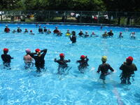 もし水に落ちてしまったら…。今日学習したことが思い出せるといいです。しかし、泳げない人は落ち着いて対応することは難しいかもしれません。機会を見つけて泳ぐ練習にも取り組んでみてください。
