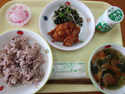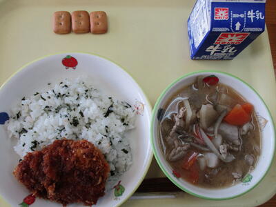 給食も防災の日献立でした。非常食によくあるわかめご飯や豚汁、乾パンが出されました。ご家庭の非常食、賞味期限は大丈夫でしょうか?この機会に点検してみるのもよいかもしれません。