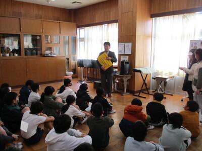 4年生は、わが町未来探究科(信篤三つ葉学園の3校での取り組みです。)の学習の一環で、地域をきれいにしたいという思いを持ち、「ごみのポイ捨て防止ポスター」に取り組みました。出来上がったポスターは、ラミネートをして地域の各所に掲示していただけることになっています。今日は出来上がったポスターを二俣自治会の会長さんに手渡しました。地域に掲示されるのが楽しみですね。(5月頃になってしまいそうだとのことです)