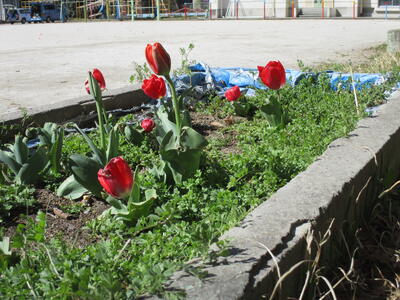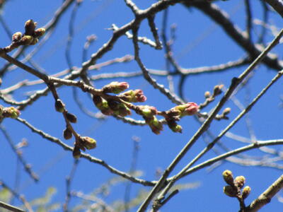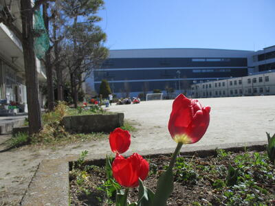 昨日は、晴れたり雨が降ったりで、天気が目まぐるしく変化しました。今日は、天気は良いのですが、風が強く冷たく吹いていました。遠くの雲も飛ばされてしまったのか富士山がくっきりと見えました。花壇のチューリップが咲き始めました。桜のつぼみも膨らんでいます。咲き始めるのはもう少し先のようです。