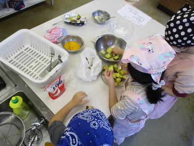 今日、さくら学級は、畑で収穫したサツマイモの調理を行いました。1組は力を合わせてスイートポテトを。2組の子たちは自分で調べて思い思いの料理を作りました。自分たちで育て、調理したおイモ料理、格別の味だったでしょう。(食べるところは見られませんでした;∀; ) 先生たちもおすそ分けをいただきました。とてもおいしくできていました(^^)v