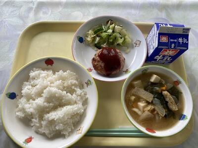 ごはん ひじき入り豆腐ハンバーグ キャベツの昆布和え 大根とワカメのみそ汁 牛乳