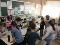 1年生:保健の学習で「よくかむことの大切さ」について、養護教諭・栄養教諭と一緒に学習しました。しっかり学習し、そのあとの給食では、みんなよくかんで食べていました。