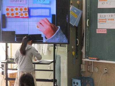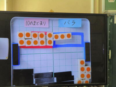 1年生は「ひきざん」の学習です。 ブロックを使って、13-9 の計算の仕方を考えました。1個ずつ引いていったり、10から9を引いて考えたりいろいろな考え方をすることができました。