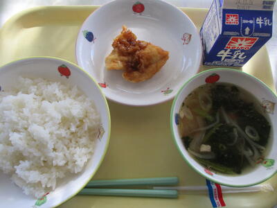 ごはん 油淋鶏 中華スープ 牛乳