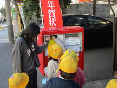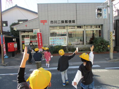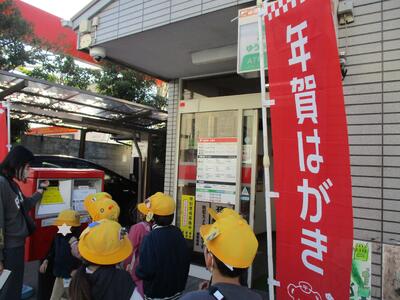 今日は、1年生が書き方を教わって書いた年賀状を、二俣郵便局まで投函しに行きました。ポストに年賀状を入れた後に「ちゃんと届きますように!!」と手を合わせて拝んでいる姿がとてもかわいかったです。きっと確実に届けてくれます。1月1日が楽しみですね。