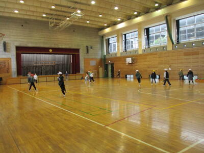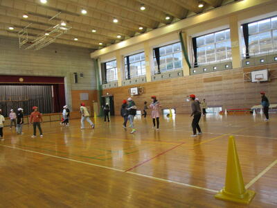 冬休みまで、今日を入れても3日間。どの学年も授業のほうは一区切りつきそうです。体育館では、お楽しみ会、クリスマス会などでゲームを楽しむ声が響いています。今日は3年、2年、5年2組、5年1組が楽しんでいました。様子がわかりづらくてすみません…m(__)m