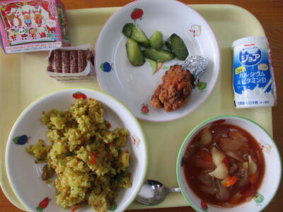 カレーピラフ フライドチキン フレンチきゅうり ミネストローネ クリスマスケーキ ジョア