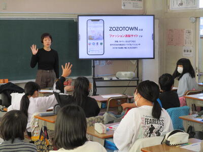 今日、6年生は、キャリア教育の一環として、ファッション界では有名な「ZOZO」の方に出前授業を行っていただきました。ZOZOという会社の活動を通して、6年生なりの「仕事」や「働くこと」についての考えを深めていきます。働くことは、お金を稼ぐことだけが目的ではないですね。ZOZOの方の質問に、積極的に考えを発表した6年生。自分なりに考えを深めていったようです。