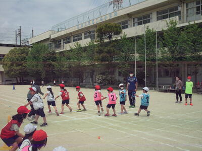 バトンはリングタイプのものを使います。1.2年生は半周ずつ、3年生は1周走ります。3年生は終盤になってからががんばりどころです。バトンの受け渡しはまだまだ練習が必要ですね。これからしっかり練習して、本番ではカッコいい走りを見せてくださいね( `ー´)ノ