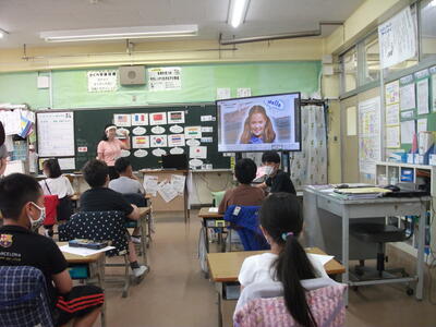 さくら学級は外国語です。いろいろな国のあいさつを学習しています。歌を歌いながら楽しく覚えています。