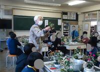 12月9日の二俣小 投稿日時 : 2022/12/09 二俣小学校管理者 外部講師をの先生をお招きして、6年生の華道教室が行われました。 先生から、水切りの仕方や、植物の種類ごとにハサミの入れ方を丁寧に教えていただき、約1時間ほどの時間をかけて器に花を生けていきました。 慣れない作業に、はじめは不安そうな様子の子どもたちでしたが、次第に、どこにどのように花を挿そうか考えることが楽しくなってきたようで、真剣に花と向き合う姿や笑顔を見せながら活動に取り組んでいました。 完成した作品はどれも一人一人の個性が表れた素敵なものとなりました。