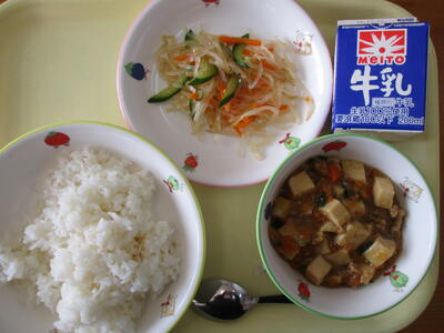 ごはん 麻婆豆腐 春雨サラダ 牛乳