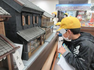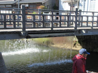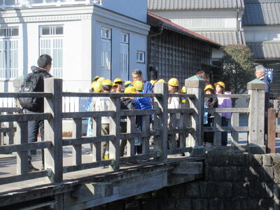 佐原に到着して、佐原の街並みを歩きながら、伊能忠敬記念館で伊能忠敬の足跡について学習します。展示物を見ながらガイドさんの話をしっかりと聞き、一生懸命にメモをとっていました。たくさんの発見がありました。樋橋(通称ジャージャー橋)から水が出る様子には大興奮でした。