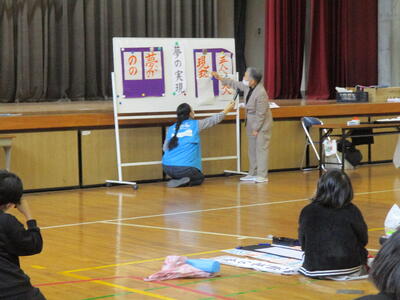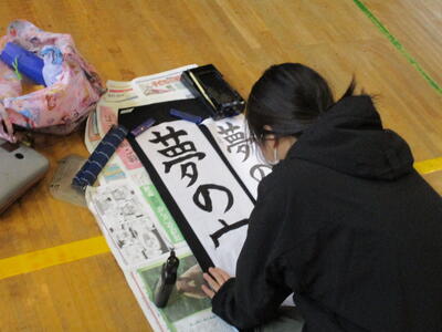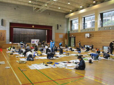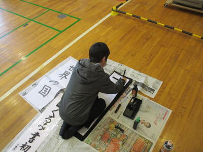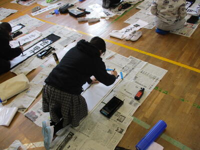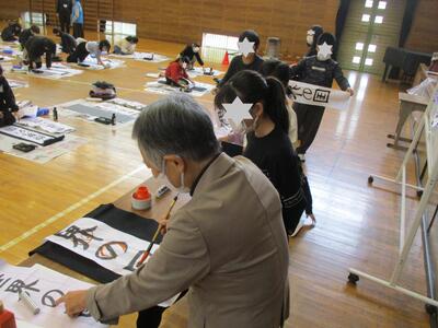 今日は、5・6年生が地域の方を講師にお招きして、書初めの練習を行いました。さすが高学年、準備も手際が良く、短時間で行っています。
