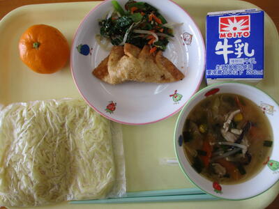 みそラーメン おから入り揚げギョウザ ナムル みかん 牛乳