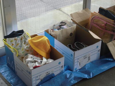 引き渡し訓練に合わせて、学校に品物を持ってきていただきありがとうございます。