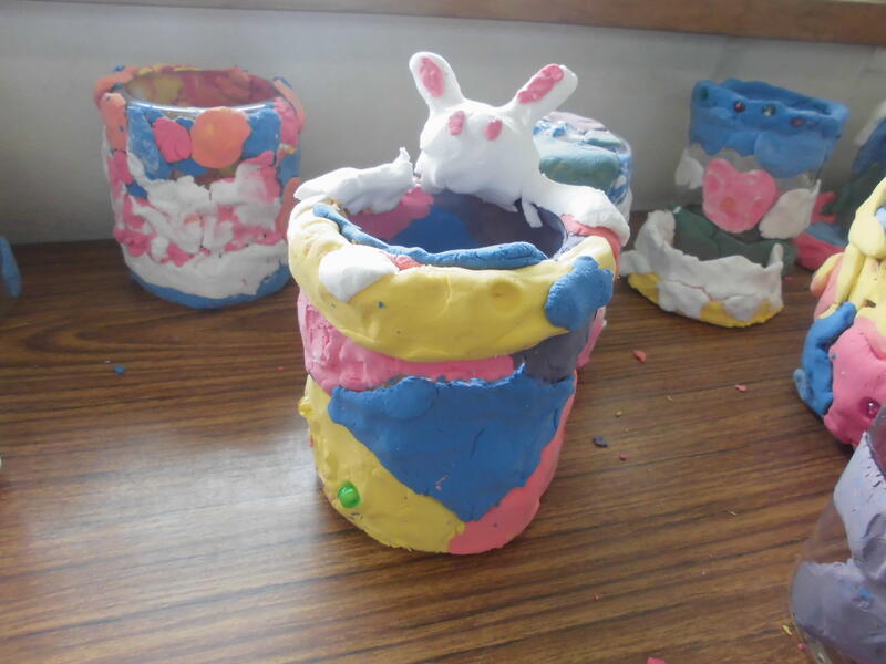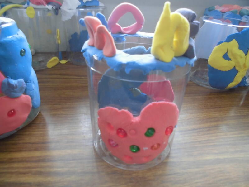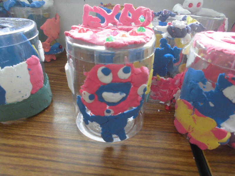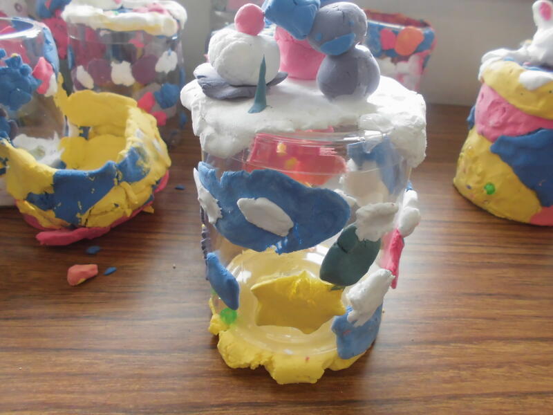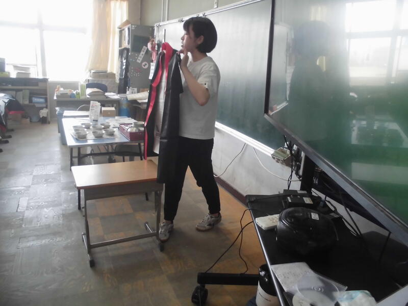 2年生の教室をのぞくと、紙袋を使った図工作品が次々と完成していました。
