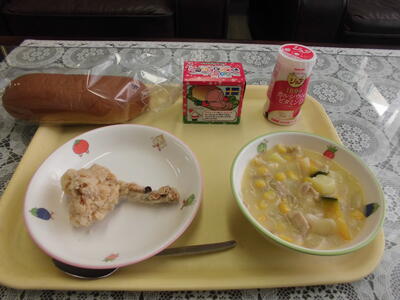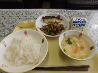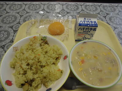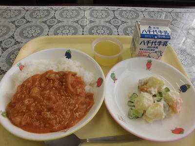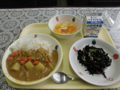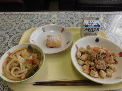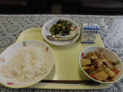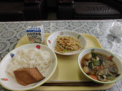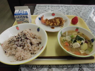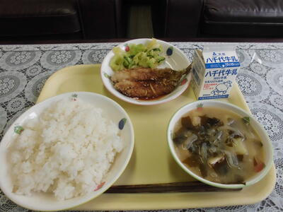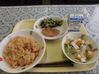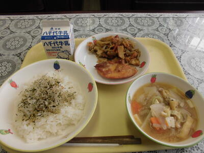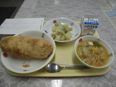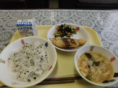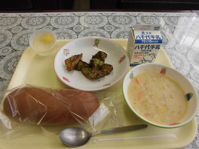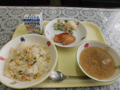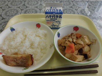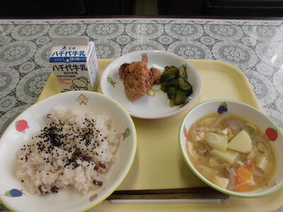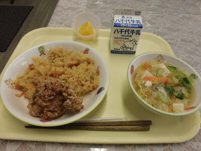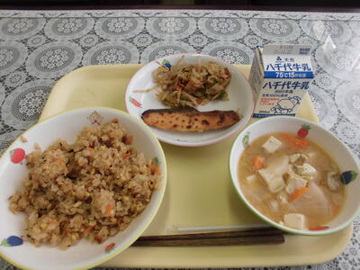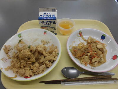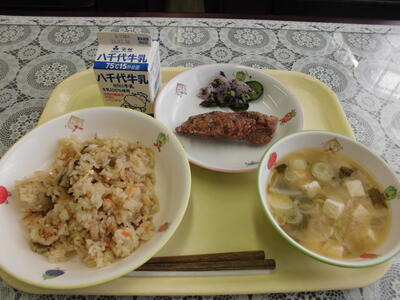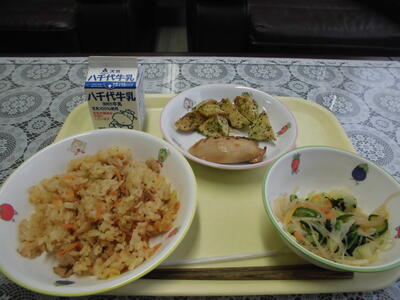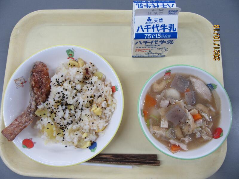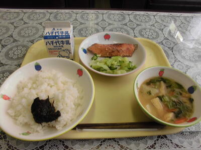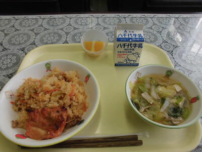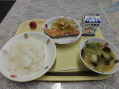 献立:牛乳、ご飯、鮭の竜田揚げ、