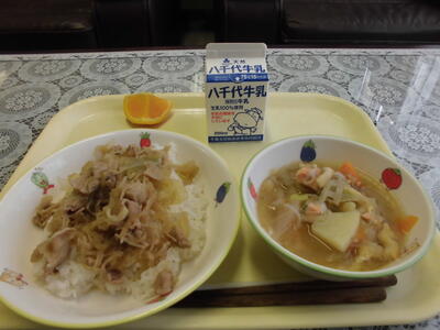 ※きのこたっぷりのあんかけ丼と野菜とお肉たっぷりの豚汁で