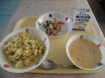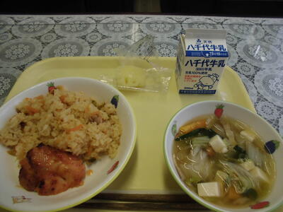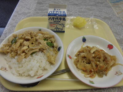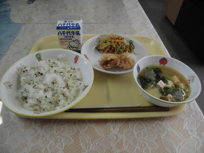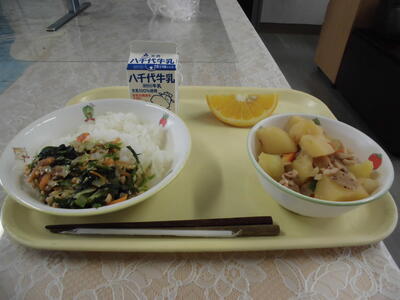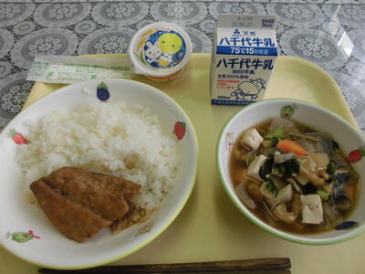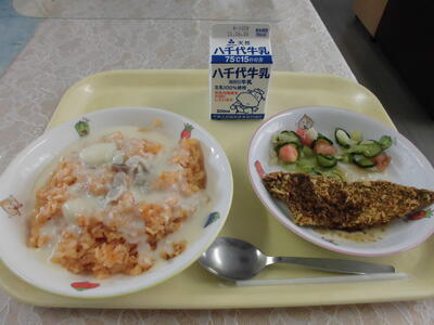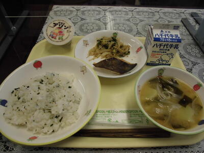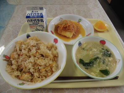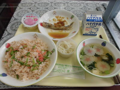 献立:牛乳、春の香りご飯、鰆の南蛮