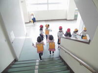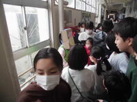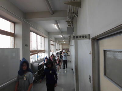 3時間目に、大地震発生に伴う、津波警報発令を想定し校舎4階への避難訓練を実施しました。