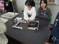 4年生 理科の「金属のあたたまり方」についての実験中です。ガスコンロやスタンドなどの使い方に気を付けながら、どのような変化が起こるのか、観察しています。子供たちは、楽しそうに学習しています。